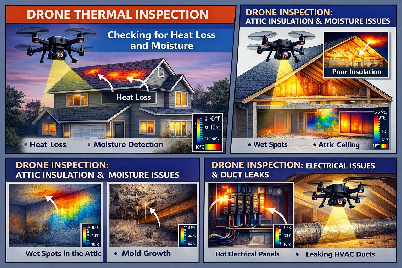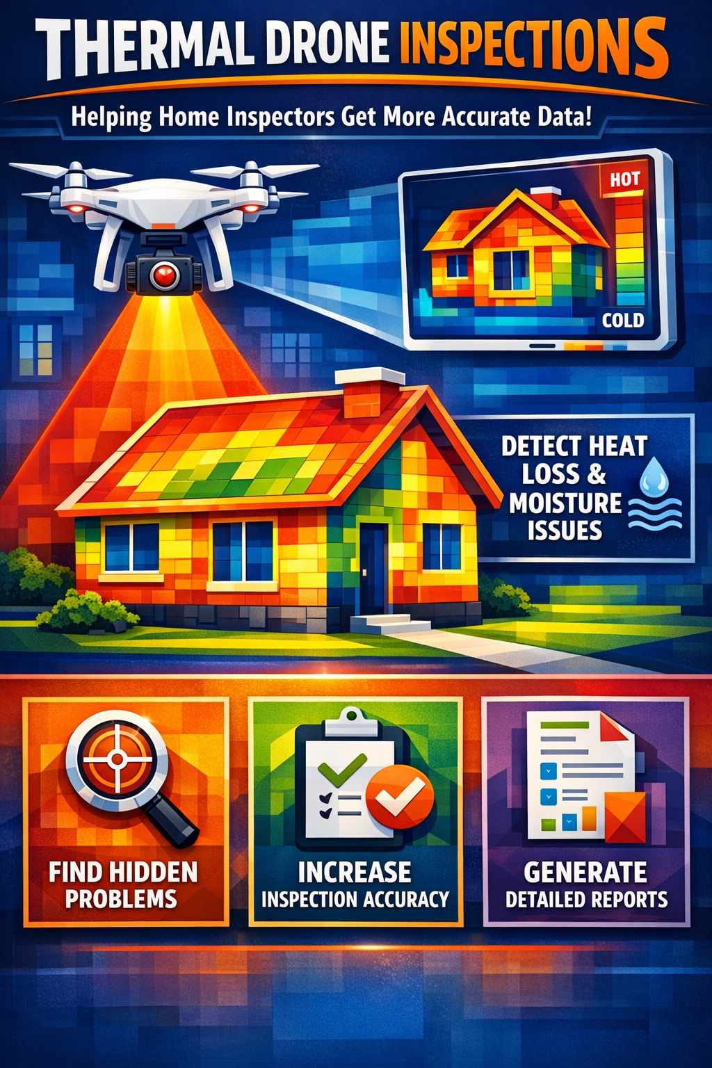 Build Buyer Confidence by Assisting Traditional Home/Commercial Inspectors with Advanced Data Capturing, providing detailed thermal reports (with images showing good energy performance or resolved issues) setting the listing apart in the market. Buyers see transparency and thoroughness, witch can attract more interest and build trust between buyers and sellers, especially from buyers that are energy-conscious. Setting lasting Impressions . Help us, Help you!